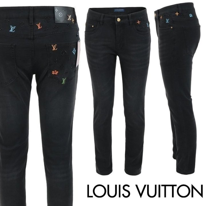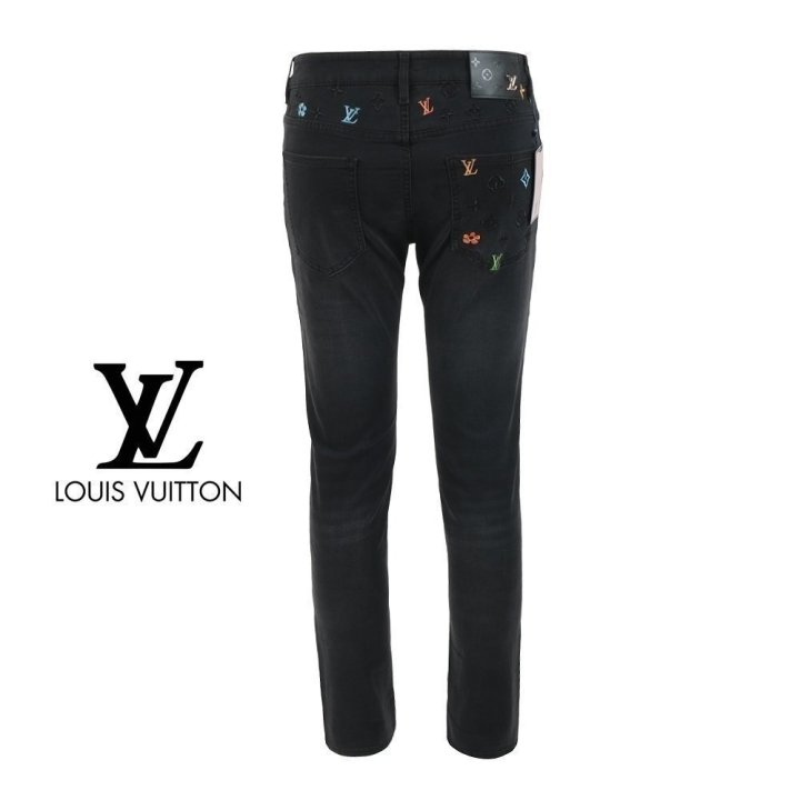 컬러 자수 블랙 슬림 일자진