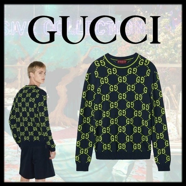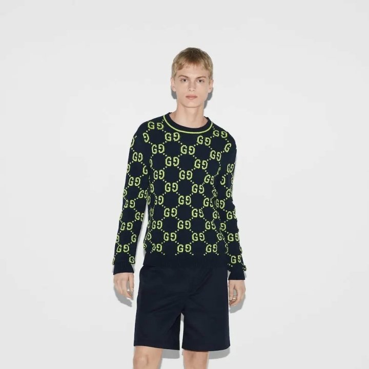 GG 코튼 자가드 크루넥 스웨터