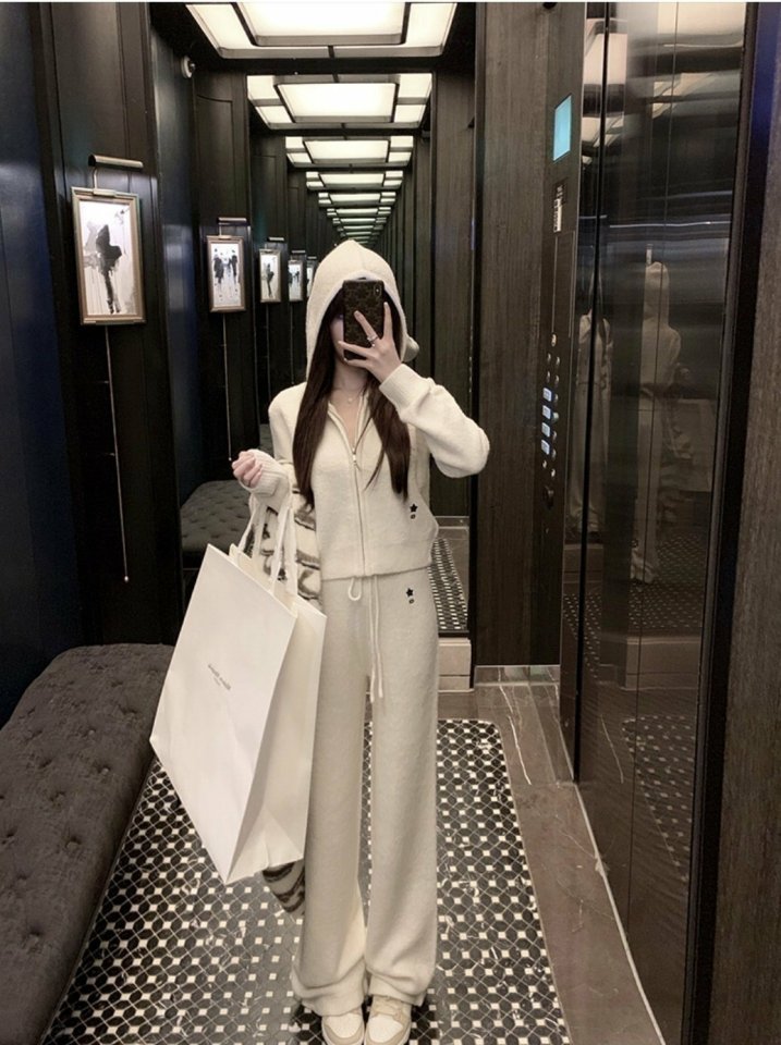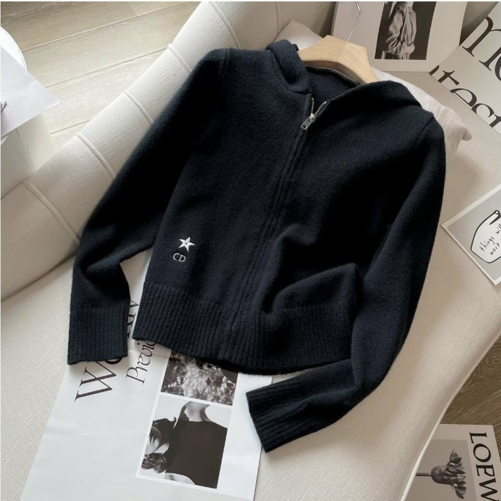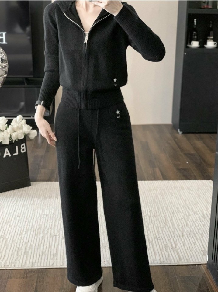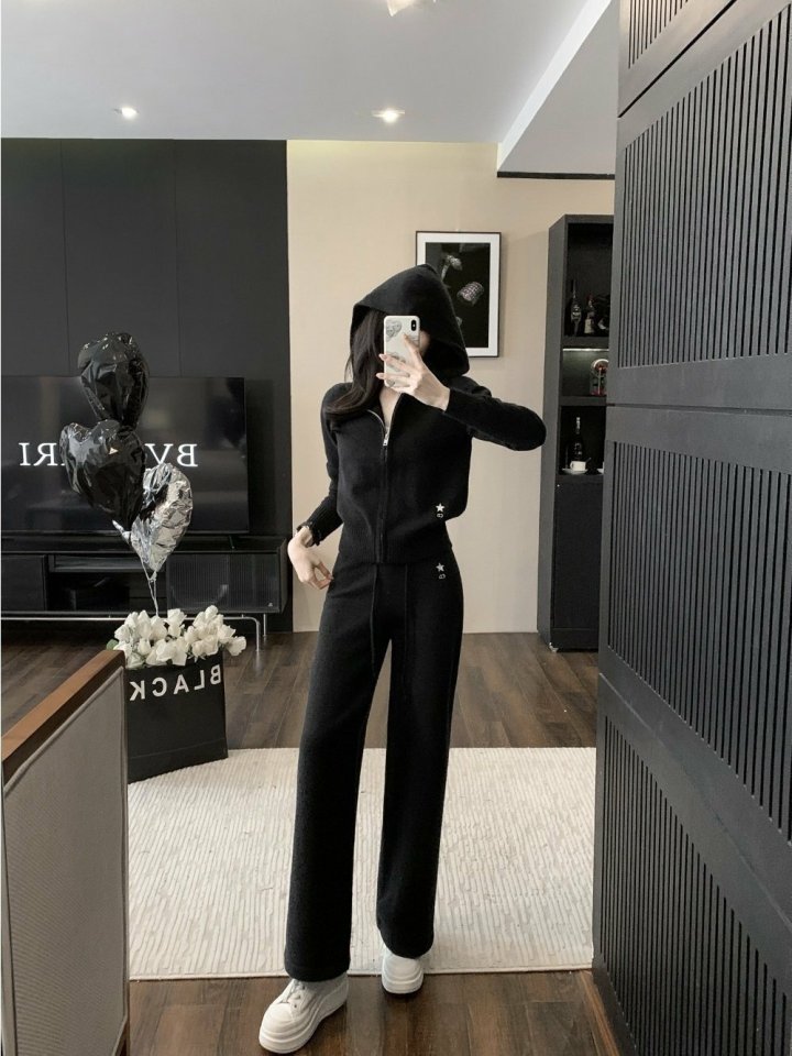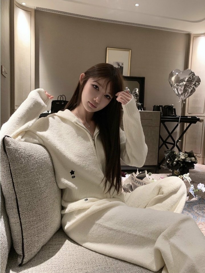 디* 별 자수 후드 니트 셋업