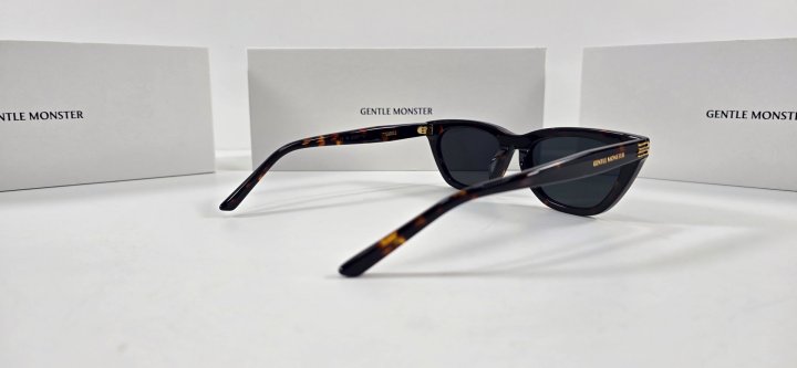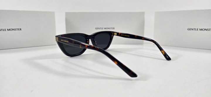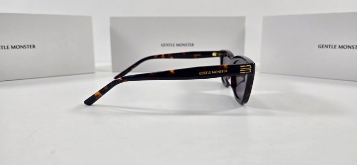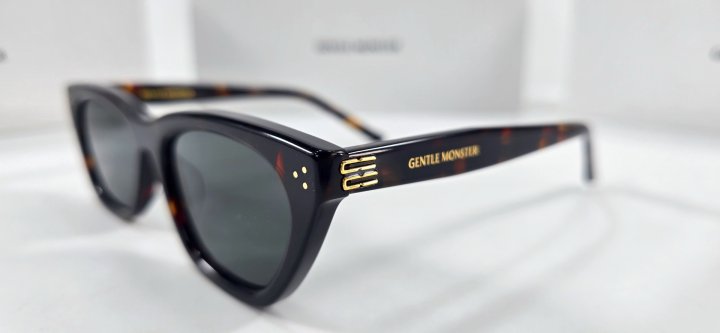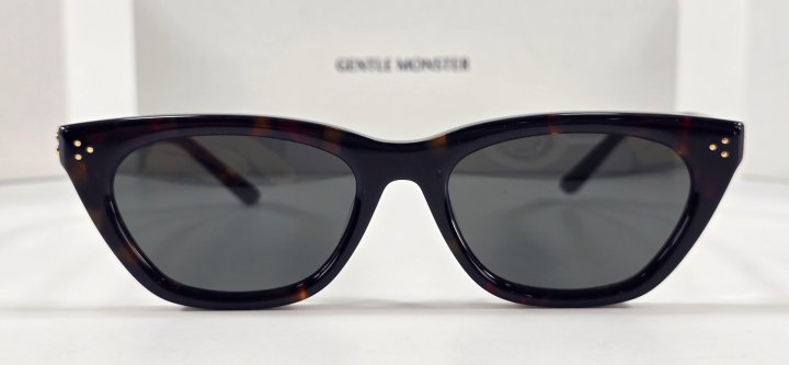 모던한 감각의 톨로이즈쉘 아세테이트 소재의 캣아이 프레임 선글라스