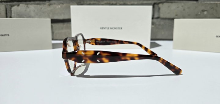에비에이터 프레임 상단에 자리한 노즈 브릿지가 화려한 톨토이즈쉘 패턴과 어우러져 레트로한 무드를 극대화. 직선으로 뻗은 템플에 더해진 시그니처 숫자 로고를 통해 컬렉션의 모던함을 느낄 수 있으며, 두 브랜드의 고유한 아이덴티티가 더해진 젠틀몬스터와 메종 마르지엘라의 새로운 컬렉션.