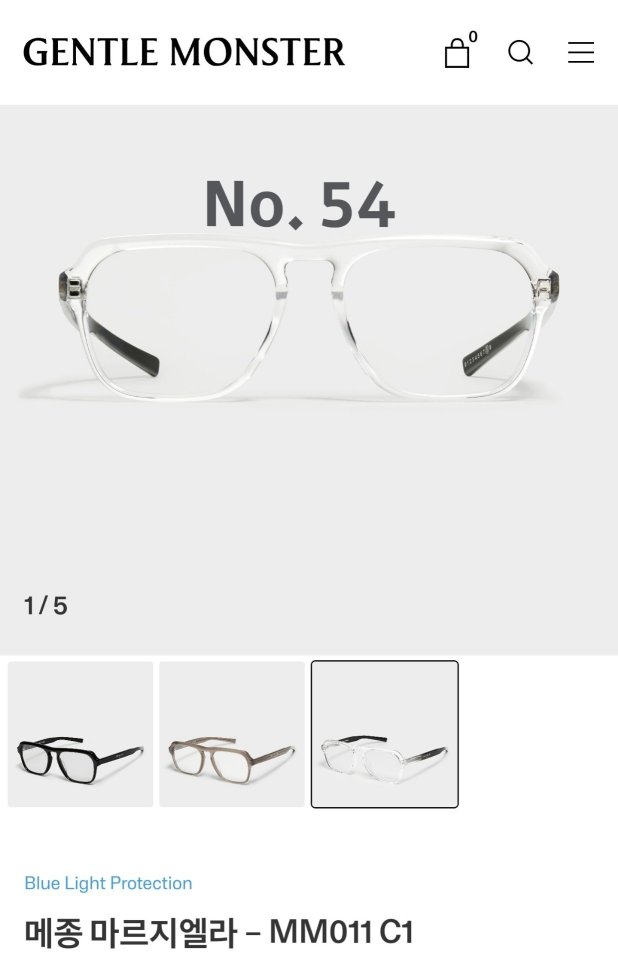 젠틀몬스터와 메종 마르지엘라의 콜라보레이션 컬렉션 속 MM011 C1 안경.