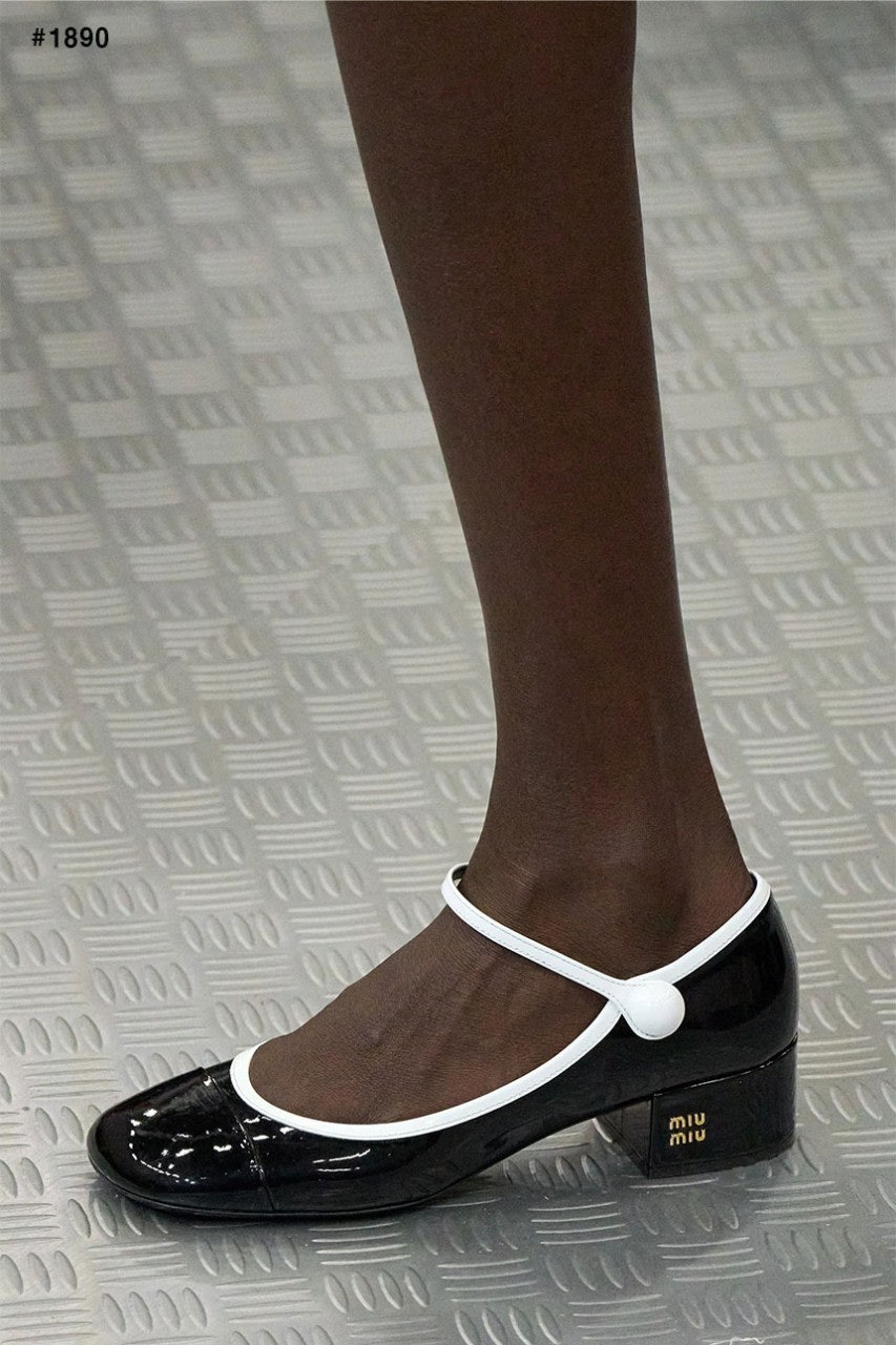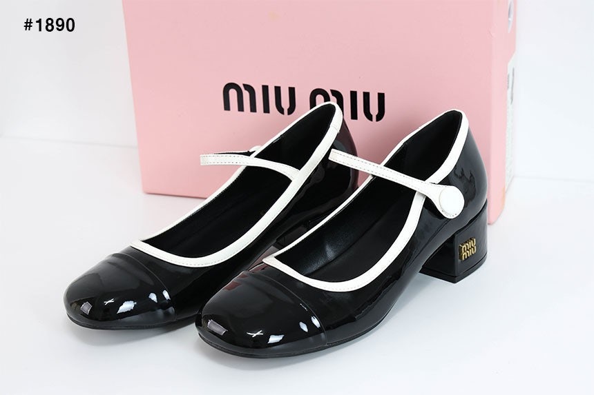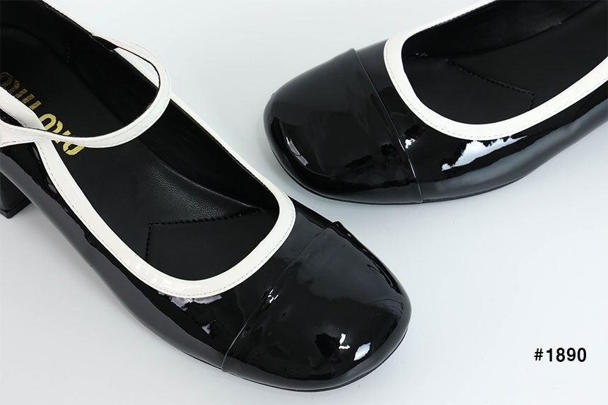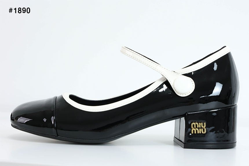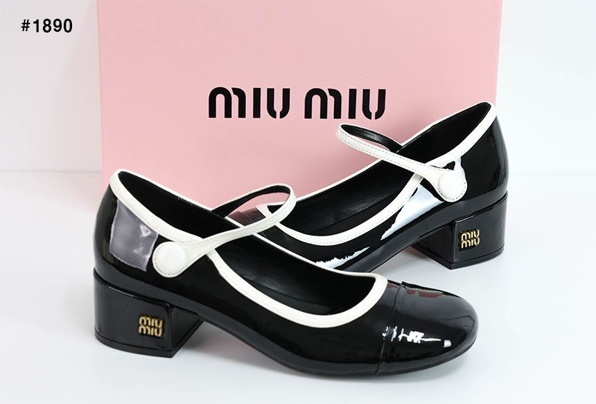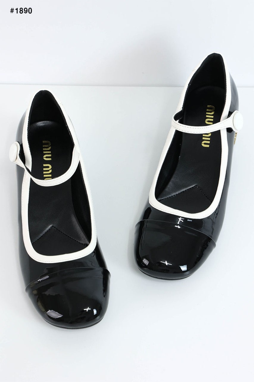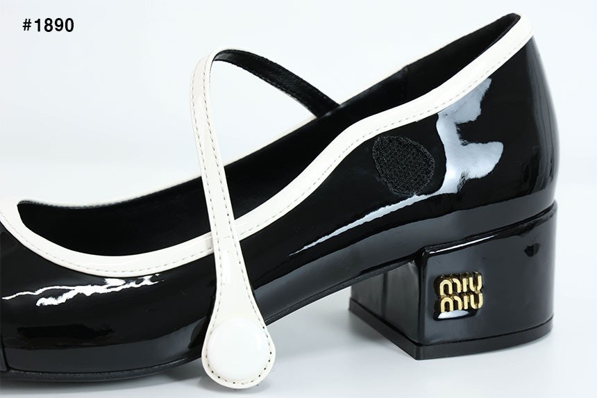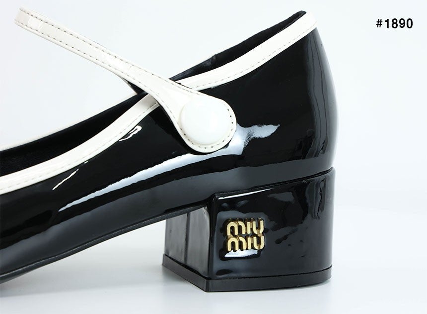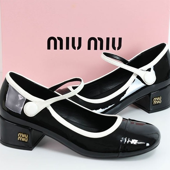 미우미우 투톤 페이턴트 메리제인 펌프스 힐