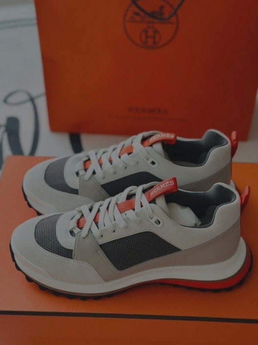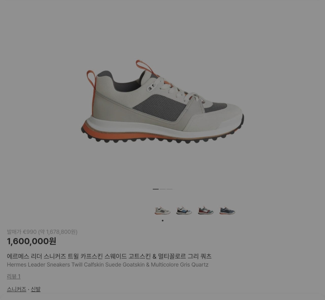 H. 리더 스니커즈 트윌 카프스킨 스웨이드 고트스킨 & 멀티꼴로르 그리 쿼츠