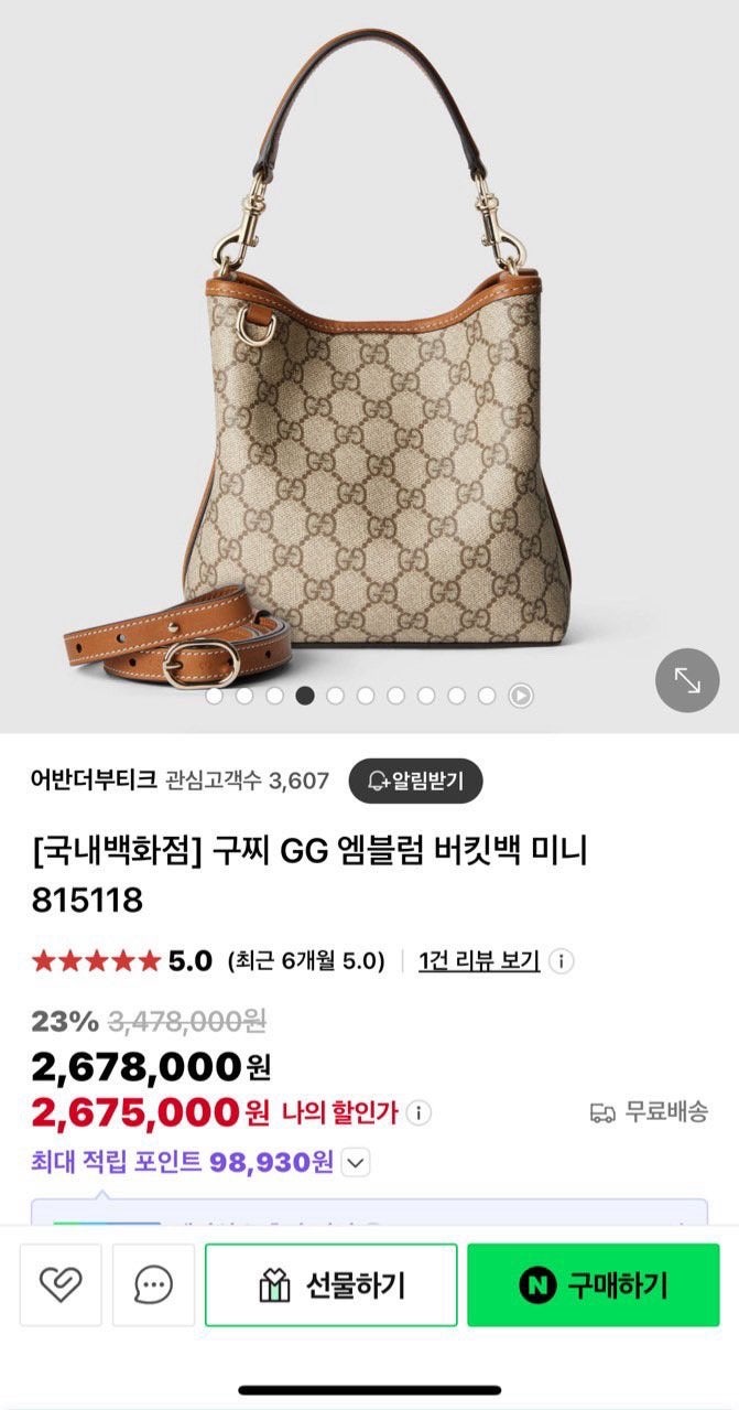구찌 (G*cci) GG 엠블럼 미니버킷백 (21*20*9)